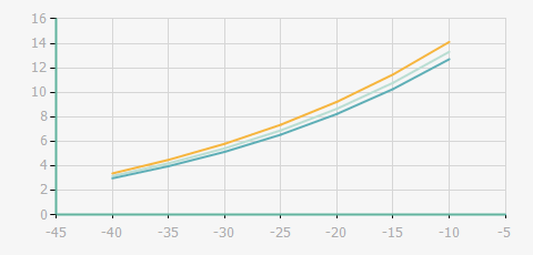 | 蒸發(fā)溫度 | 制冷量+/-5% | 能耗+/-5% | 現在能效+/-5% | 氣體流速+/-5% | 能效+/-7% | ||||